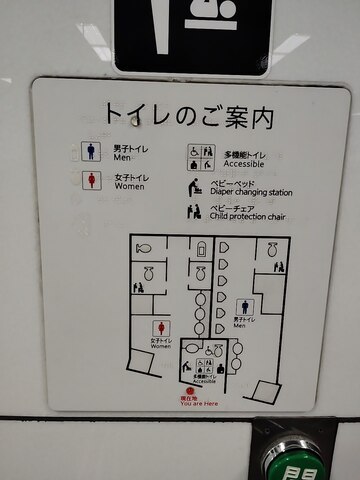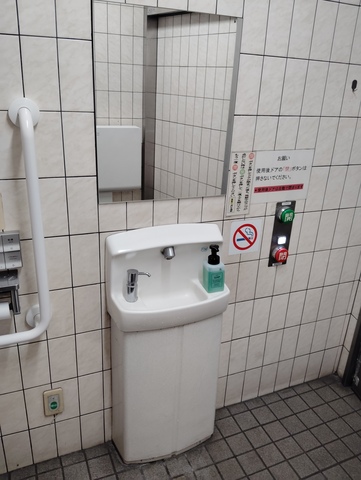| 備考 | 多機能トイレは2枚目の写真の案内図の様な設置ですが、オストメイト設備と洗面台の設置場所が反対になっているので使用する際、特に視覚的な障害を持つ方、点字を用いて生活されている方などは注意して使用してください。 |