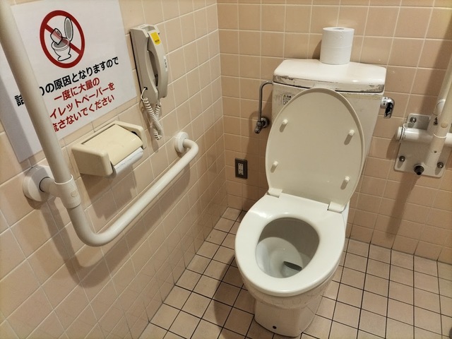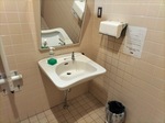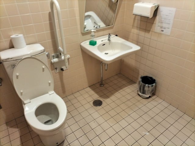 トイレは、地下1階にあります。 男女別トイレと、多機能トイレがあります。 多機能トイレには、洗面器、高座面の洋式便器がございます。 温水洗浄便座の設置などはありません。 |