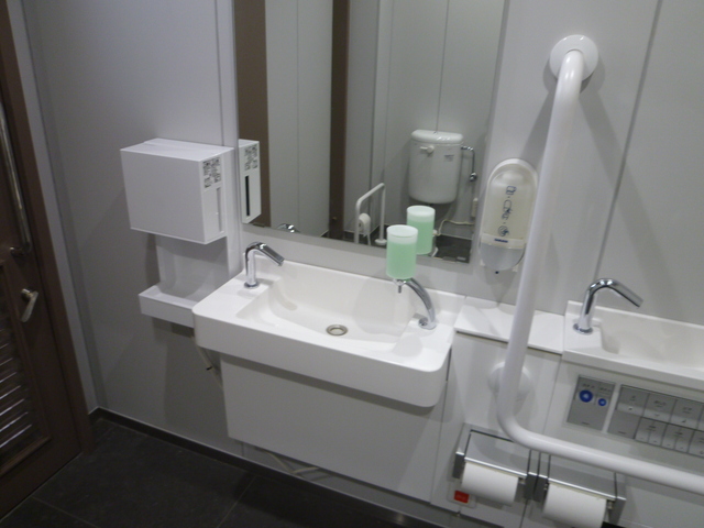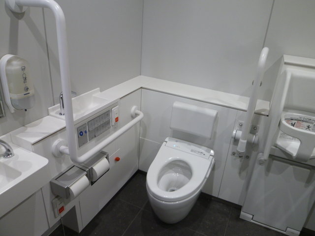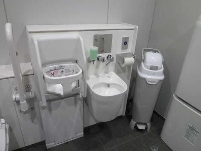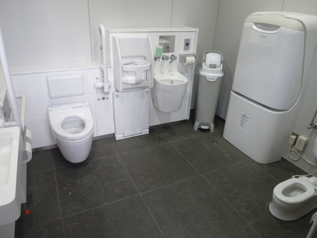 トイレはハローコーヒー付近にあります。 ■多機能トイレは男女共用1室のみの設置です。 ■ドアは手動です。 ■オストメイト対応汚物流し(給湯設備付き)があります。 ■ベビーシート・ベビーチェアがあります。 ■着替え台があります。 ■幼児用大便器があります。 ■一般トイレにベビーチェアがあります。 【参考URL】 https://gardenschihaya.com/park/  |