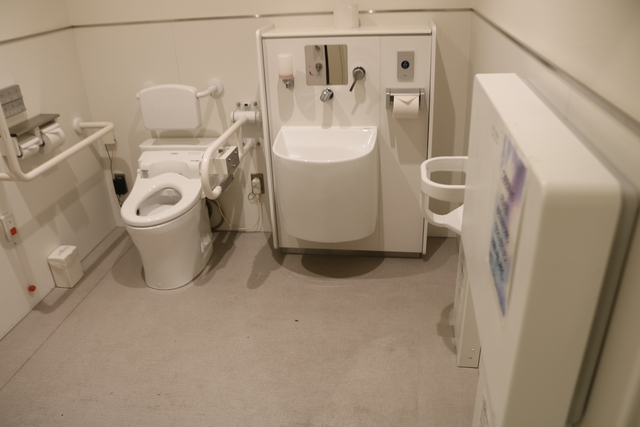 トイレは店内奥に設置されており、男性用とバリアフリートイレとベビー休憩室が各1室、女性用2室の設置で、バリアフリートイレは男女兼用1室となっています バリアフリートイレにはベビーベッドや子供ホルダー、オストメイト流し(給湯設備の有無は未確認)が設置されてます ※レジ袋は用意してないとの事なので、買い物の際は事前に袋や篭等をご用意ください 参考URL:https://chitoseya.roukyou.gr.jp |