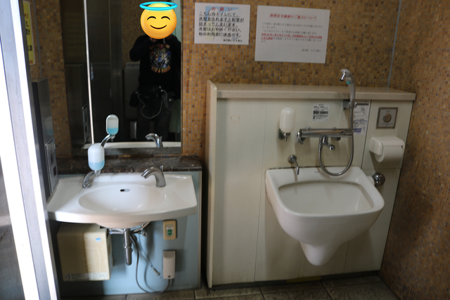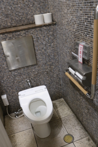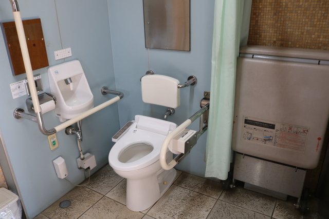 トイレは建屋東側に1か所設置設置されており、バリアフリートイレは男女兼用1室の設置となっています バリアフリートイレには多目的ベッドや子供ホルダー、オストメイト流し(先止め給湯器のドレンがあったため、給湯設備は多分設置)が設置されてます。また、便座は一般用共々温水洗浄便座なのですが、男性用個室の内1室が当時故障中でした また、ドアの開閉は近年はあまり見なくなった光電管式です 参考URL:https://www.michinoeki-hachioji.net/ |