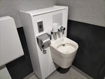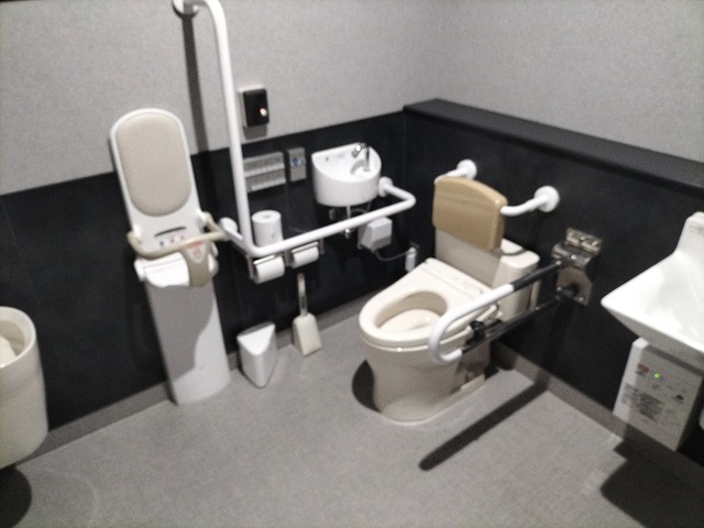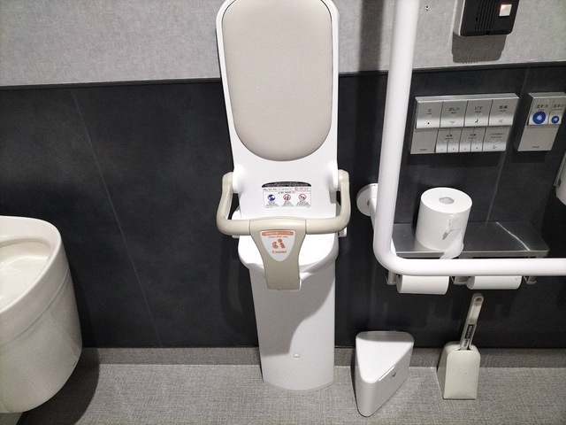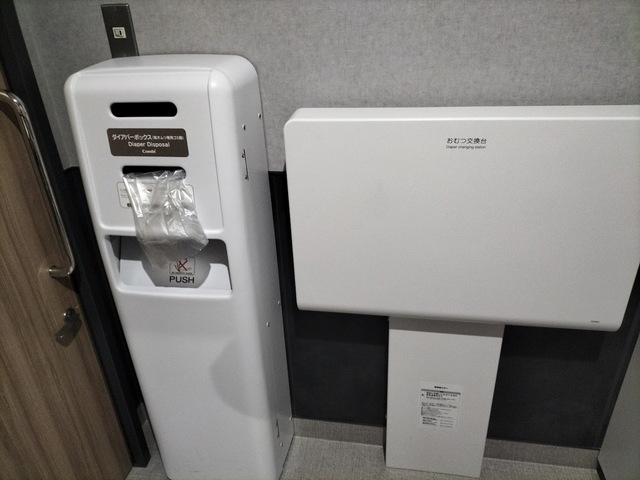 トイレは、3階にあり、3階の営業時間に合わせられているため、利用時間は夕方7時までです。 設備は、大便器、ベビーチェア、ベビーシート、おむつ用ダストボックス、オストメイト対応汚物流し、手洗い器です。 一般トイレ内には、ベビーチェア付きの個室がございますので、そちらもご利用ください。 |