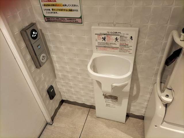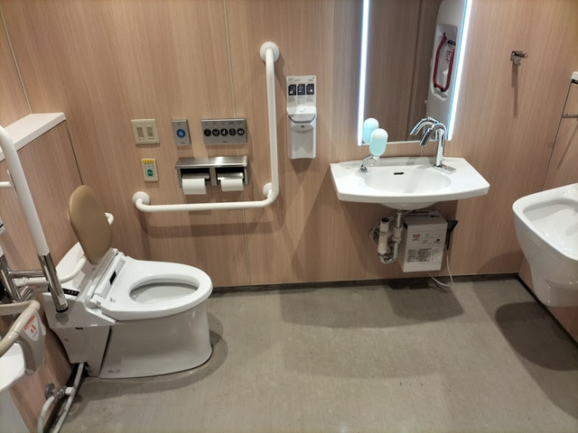 多機能トイレは、2階東側、4階にあります。 両トイレ共に男女兼用1室のみの設置です。 扉は自動スイッチ式です。 2階東側の多機能トイレは右勝手、4階のトイレは左勝手です。 駅構内トイレに設置のない、温水洗浄便座があります。 トイレ内の設備は両トイレ共に共通で、手洗い器、ベビーチェア、多目的シート、オストメイト対応の汚物流し、洋式便器です。 多機能トイレ数は少ないため、できる限り一般トイレをご利用するようにお願い致します。 また、小田急小田原線をご利用の方は、駅構内のトイレを利用することも視野に入れておいてください。 駅構内の多機能トイレは、先述の設備で温水洗浄便座がなく、幼児用小便器の設置があります。 駅構内の男性用トイレには、ベビーシートの設置がございますので、そちらを第一にご利用ください。 一般トイレには、ベビーチェアが設置されている個室がどのトイレでも必ず1室はあるため、多機能トイレのご利用はなるべく避けてください。 画像 1枚目:2階 全体 2枚目:2階 オストメイト 3枚目:2階 多目的シート 4枚目:2階 ベビーチェア 5枚目:4階 全体 6枚目:4階 手洗い器 7枚目:4階 オストメイト 8枚目:4階 多目的シート 9枚目:4階 ベビーチェア |