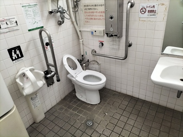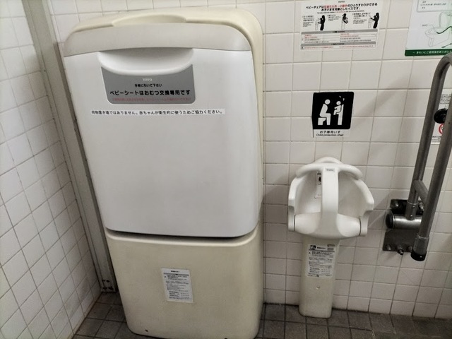 トイレは、男女別トイレと、多機能トイレの設置です。 トイレ内の設備は、手洗い器、ベビーシート、ベビーチェア、高座面の洋式便器です。 オストメイト設備は、便器に設置されている洗浄水栓です。 また、一般トイレ内にもベビーチェアの設置がございます。 |