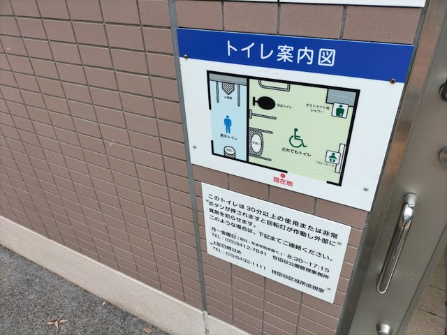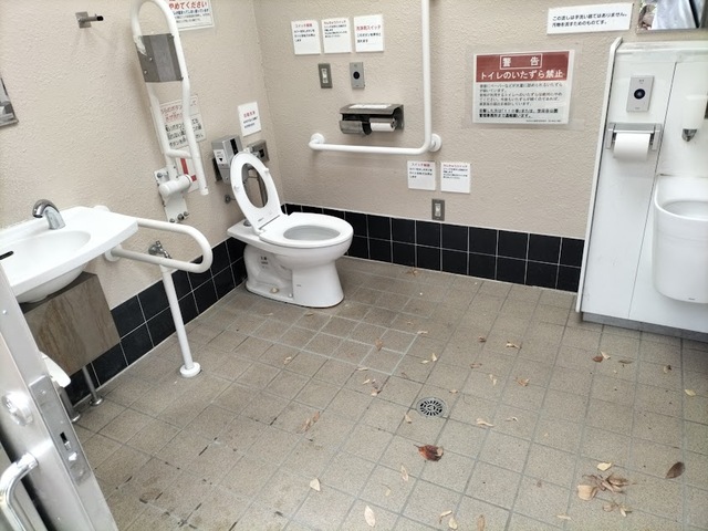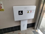 トイレは、男性用小便器と、多機能トイレの設置です。 トイレ内の設備は、手洗い器、ベビーシート、ベビーチェア、オストメイト対応汚物流し、洋式便器です。 男性大、女性はこちらのトイレをご利用することになります。 |